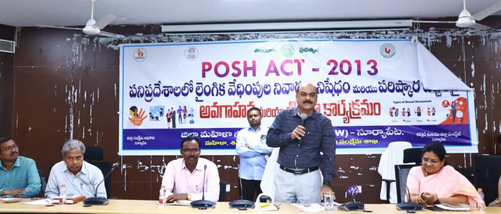 10 మందికి పైగా సిబ్బంది ఉన్న ప్రతి కార్యాలయంలో తప్పనిసరిగా అంతర్గత ఫిర్యాదుల కమిటీ (ICC) ఏర్పాటు చేయాలని ఆదేశించారు. ఏవైనా వేధింపులు ఎదురైతే మహిళలు నిర్భయంగా ఫిర్యాదు చేయాలని కోరారు. 2013 చట్టం ప్రకారం వేధింపులకు పాల్పడిన వారిపై కఠిన చర్యలు తీసుకునే అవకాశముందని, పని ప్రదేశాల్లో మహిళల ఆత్మగౌరవాన్ని కాపాడడమే ఈ చట్టం ముఖ్య ఉద్దేశమని వివరించారు. అనంతరం POSH చట్టం కమిటీ చైర్మన్, డిప్యూటీ సీఈవో శిరీష మాట్లాడుతూ, మహిళా ఉద్యోగుల పట్ల గౌరవంగా వ్యవహరించాలని తెలిపారు. మహిళలను తక్కువగా చూడటం, సైగలు చేయటం, అసభ్యంగా తాకటం, సెల్ఫోన్లో అసభ్య సందేశాలు పంపటం వంటి చర్యలు చట్టరీత్యా నేరమని స్పష్టం చేశారు. ఇలాంటి సందర్భాల్లో బాధితులు మానసికంగా కుమిలిపోకుండా ధైర్యంగా కమిటీ ముందుకు వచ్చి ఫిర్యాదు చేయవచ్చని, ఫిర్యాదులను రహస్యంగా దర్యాప్తు చేసి న్యాయం చేస్తామని తెలిపారు. ఈ కార్యక్రమంలో జిల్లా స్త్రీ, శిశు సంక్షేమ అధికారి నరసింహారావు, కమిటీ సభ్యులు దయానంద రాణి, శంకర్ నాయక్, జిల్లా ట్రెజరీ అధికారి రవికుమార్, కలెక్టరేట్ పరిపాలన అధికారి సుదర్శన్రెడ్డి, టీఎన్జీవోస్ జనరల్ సెక్రటరీ దున్న శ్యామ్, కార్యాలయ అధికారులు, సిబ్బంది తదితరులు పాల్గొన్నారు.