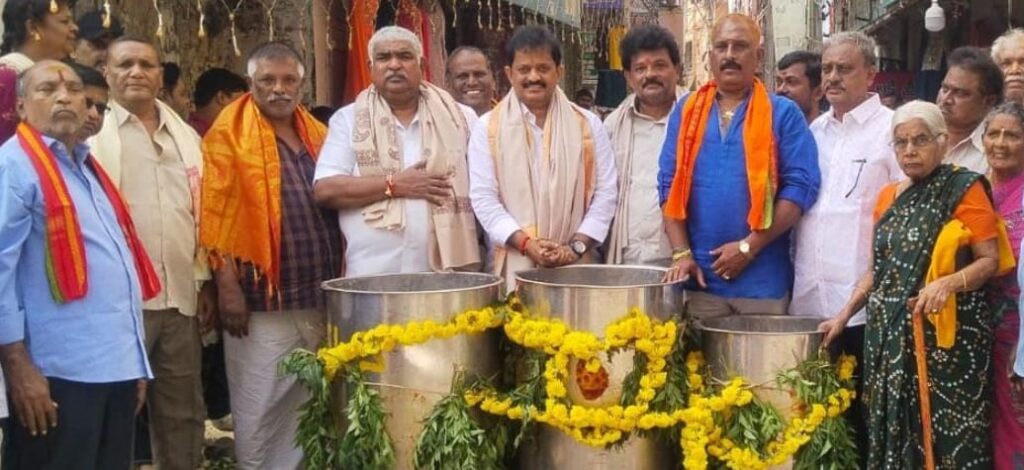 సాక్షిత ప్రతినిధి – తిరుపతి: తిరుమల శ్రీవారి పాదాల చెంత ఆకుతోట వీధిలో మంగళవారం నడివీధి గంగమ్మకు అంబలి పోసి మొక్కులు తీర్చుకున్నారు. ఈ పూజల్లో బీజేపీ సీనియర్ నేత పి.నవీన్ కుమార్ రెడ్డి పాల్గొని అమ్మవారికి నైవేద్యం పెట్టి నగర ప్రజలంతా సంతోషంగా ఉండాలని ప్రార్థన చేశారు. ఈ సందర్బంగా మేళ తాళాల నడుమ నడివీధి గంగమ్మకు తలిగవేసి, కొబ్బరికాయలు కొట్టి, హారతులు ఇచ్చి ప్రతి ఇంటి నుంచి అంబలి తయారుచేసి నైవేద్యంగా సమర్పించి భక్తులకు ప్రసాద వితరణ చేశారు. బీజేపీ నేత నవీన్ కుమార్ రెడ్డి మాట్లాడుతూ