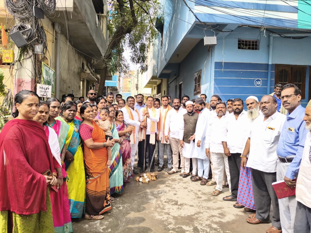 అంబర్ పెట్ డివిజన్ హైమద్ నగర్ లో సుమారుగా 14 లక్షల రూపాయల వ్యయంతో నిర్మించనున్న నూతన సీసీ రోడ్డు పనులను అంబర్పేట్ నియోజకవర్గ MLA కాలేరు వెంకటేష్ ,అంబర్ పెట్ కార్పొరేటర్ ఇ.విజయ్ కుమార్ గౌడ్ తో కలిసి శంకుస్థాపన చేయడం జరిగింది