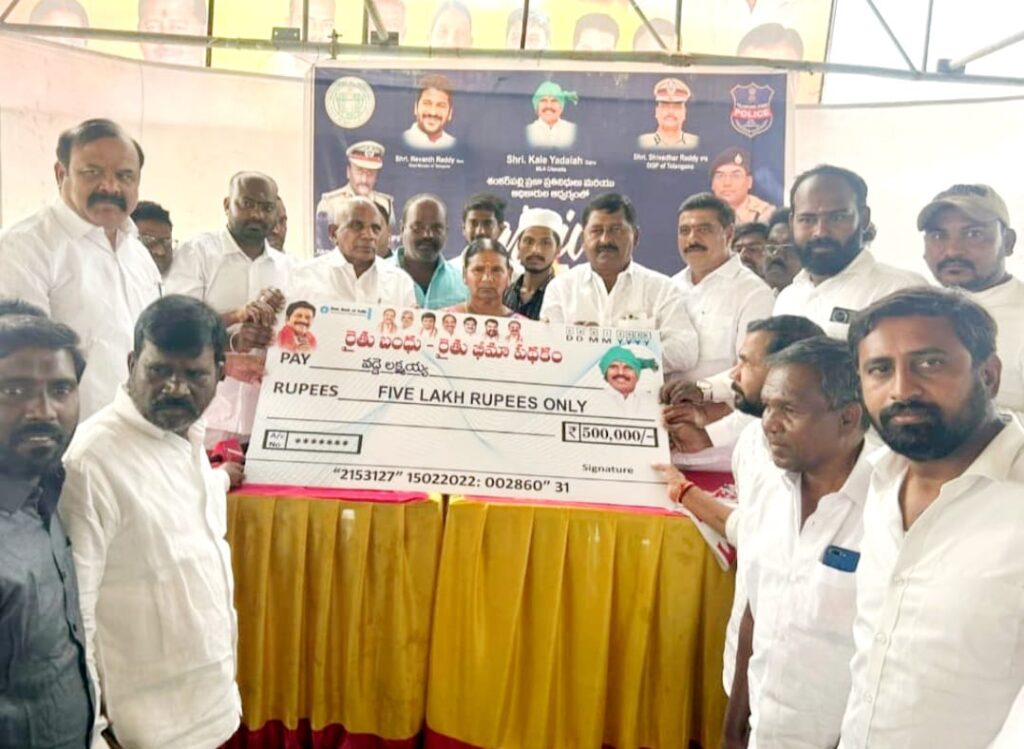 వడ్డే లక్ష్మయ్య కుటుంబానికి చేవెళ్ల ఎమ్మెల్యే యాదయ్య రూ. 5 లక్షల రైతు బీమా చెక్కు అందజేత