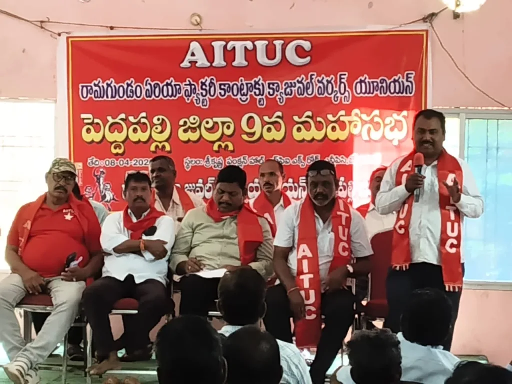 కాంట్రాక్టు కార్మికుల శ్రమ దోపిడి పెరుగుతుందని రాబోయే రోజుల్లో ఐక్య పోరాటాలకు సిద్ధంగా ఉండాలని కార్మికులకు పిలుపునిచ్చారు. సమస్యల పరిష్కారానికి పోరాటాల శరణ్యమని పోరాటాల ద్వారానే హక్కులు కాపాడబడతాయని, అనంతరం రామగుండం ఏరియా కాంటాక్ట్ క్యాజువల్ వర్కర్స్ యూనియన్ నూతన కమిటీ ఏకగ్రీవంగా ఎన్నుకోవడం జరిగింది. ఈ కమిటీకి గౌరవ అధ్యక్షులుగా కడారి. సునీల్, వర్కింగ్ కమిటీ అధ్యక్షులుగా ఎం. శంకర్, అధ్యక్షులుగా రెడ్డపాక లక్ష్మణ్, ప్రధాన కార్యదర్శి నాంసాని శంకర్ లతో పాటు 35 మందినీ ఏకగ్రీవంగా సభలో ఎన్నుకోవడం జరిగిందని అన్నారు. ఈ మహాసభలో ఏఐటీయూసీ రామగుండం నగర అధ్యక్షులు అబ్దుల్ కరీం, జిల్లా నాయకులు పెరిక రాయమల్లు, సత్యనారాయణ, నారాయణ, అర్జున్, మోహన్ రెడ్డి, కృష్ణారెడ్డి తదితరులు పాల్గొన్నారు.