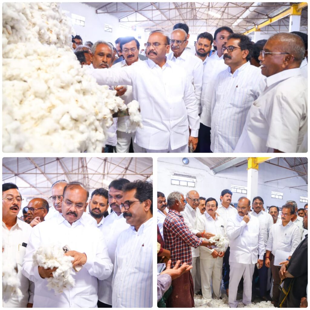 సీసీఐ కొనుగోలు కేంద్రాన్నితనిఖీ చేసి, రైతులతో మాట్లాడిన మాజీమంత్రి ప్రత్తిపాటి.