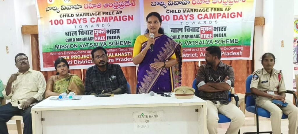 ఎస్ఐ మాట్లాడుతూ చాలామంది తల్లిదండ్రులు తమ పిల్లలు చదువుకునే వయసులోనే వివాహం చేసి చిన్నారుల జీవితాలతో ఆడుకుంటున్నారన్నారు. రాష్ట్ర ప్రభుత్వం బాల్యవివాహాలను అడ్డుకట్ట వేసేందుకు అనేక కార్యక్రమాలను చేపడుతుందని ఎక్కడైనా బాల్యవివాహాలు జరుగుతున్నట్లు ఎవరి దృష్టికి వచ్చిన హెల్ప్ లైన్ నెంబర్ 1098 ల ద్వారా వెంటనే సమాచారాన్ని సంబంధిత అధికారులకు తెలియజేయాలని తెలిపారు. బాల్య వివాహం నేరం – చట్టం ప్రకారం శిక్షార్హులు, బాల్య వివాహం చేసిన.. చేసుకున్న.. ప్రోత్సహించిన రెండేళ్ల జైలు లక్ష రూపాయల జరిమానా అనే నినాదాలతో తల్లిదండ్రుల్లో విద్యార్థుల్లో అవగాహన కల్పించాలని తెలియజేశారు. ఐసిడిఎస్ విభాగం. తమ తమ అంగన్వాడి కార్యకర్తలతో కలిసి ఇప్పటికే పలు గ్రామాలు పర్యటించి గ్రామస్తులకు బాల్య వివాహాలనిర్మూలనపై అవగాహన కార్యక్రమాలు చేపట్టామని తెలియజేశారు. ఈ అవగాహన సదస్సులో ఎమ్మార్వో అనిల్, ఎంపీడీఓ పెంచల శ్యాం, డిస్ట్రిక్ట్ మిషన్ కో ఆర్డినేటర్ కృష్ణ మంజరి, శ్రీకాళహస్తి 2 టౌన్ ఎస్ఐ గౌతమీ, సిఐ , మెడికల్ ఆఫీసర్లు శివారెడ్డి, రూపేష్, మెప్మా కో ఆర్డినేటర్, ప్రగతి సంస్థ కోటయ్య తదితరులు పాల్గొన్నారు.