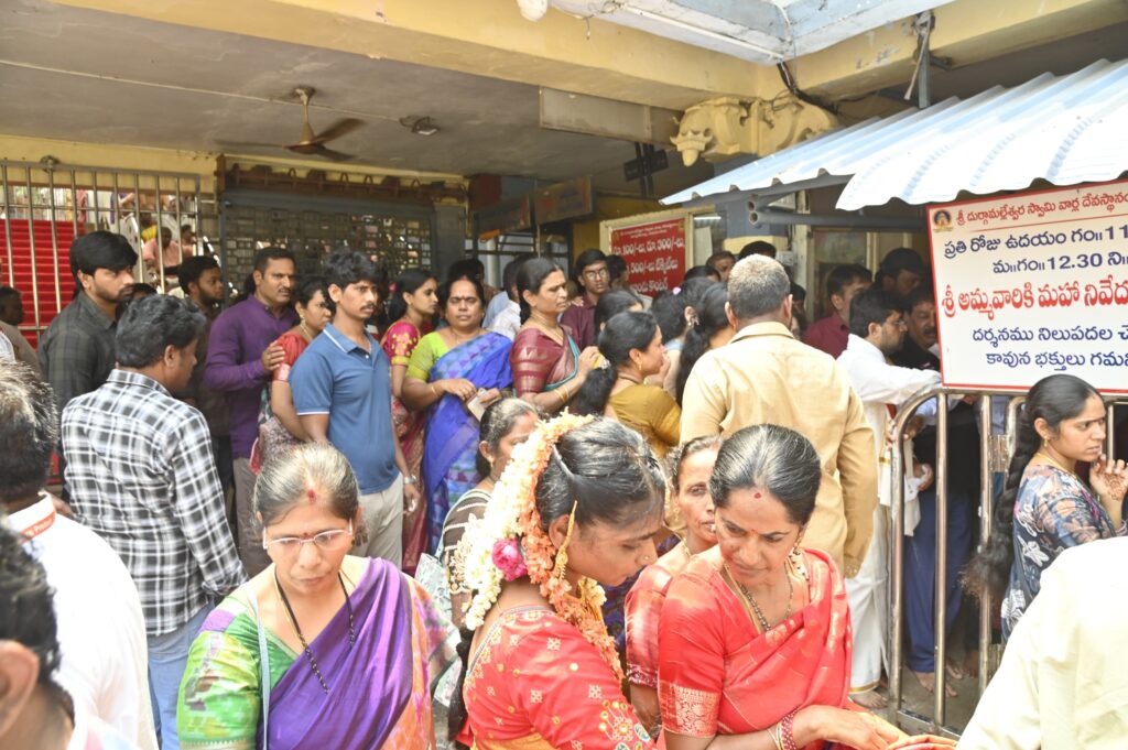 విజయవాడ ఇంద్రకీలాద్రిపై వెలసిన కనకదుర్గమ్మను దర్శించుకోవడానికి ఈ శుక్రవారం భక్తుల రద్దీ సాధారణంగా (Average) ఉంది. ఈ నేపథ్యంలో భక్తులకు ఎటువంటి ఇబ్బందులు కలగకుండా ఆలయ ఈఓ Special Grade Dy. Collector సీనా నాయక్ స్వయంగా పర్యవేక్షించారు.