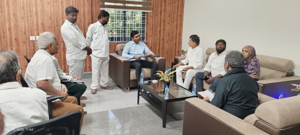 ఇప్పటికే పాఠశాల నిర్మాణం కొరకు పునాదులు వేసామని పనులు ముందుకు సాగక అక్కడ అస్తవ్యస్తంగా తయారైందని పాఠశాల నిర్మాణం పూర్తయితే ఎంతో మంది నిరుపేదలకు ఉపయోగపడుతుందని తెలిపారు…అలాగే వసంత్ నగర్, సర్దార్ పటేల్ నగర్, NRSA కాలనీలకు సంబంధించి నిర్మాణ పనులకు అడ్డంకి లేకుండా చూడాలని కోరారు… ఈ కార్యక్రమంలో అల్లాపూర్ కార్పొరేటర్ సబియా గౌసుద్దీన్, కెపిహెచ్బి డివిజన్ అధ్యక్షుడు కృష్ణారెడ్డి, మేడ్చల్ జిల్లా మైనార్టీ అధ్యక్షులు మహమ్మద్ గౌసుద్దీన్, యర్ర నాగేశ్వరరావు, హనుమంతరావు, సాంబశివరావు, మరియు కాలనీ అసోసియేషన్ సభ్యులు పాల్గొన్నారు…