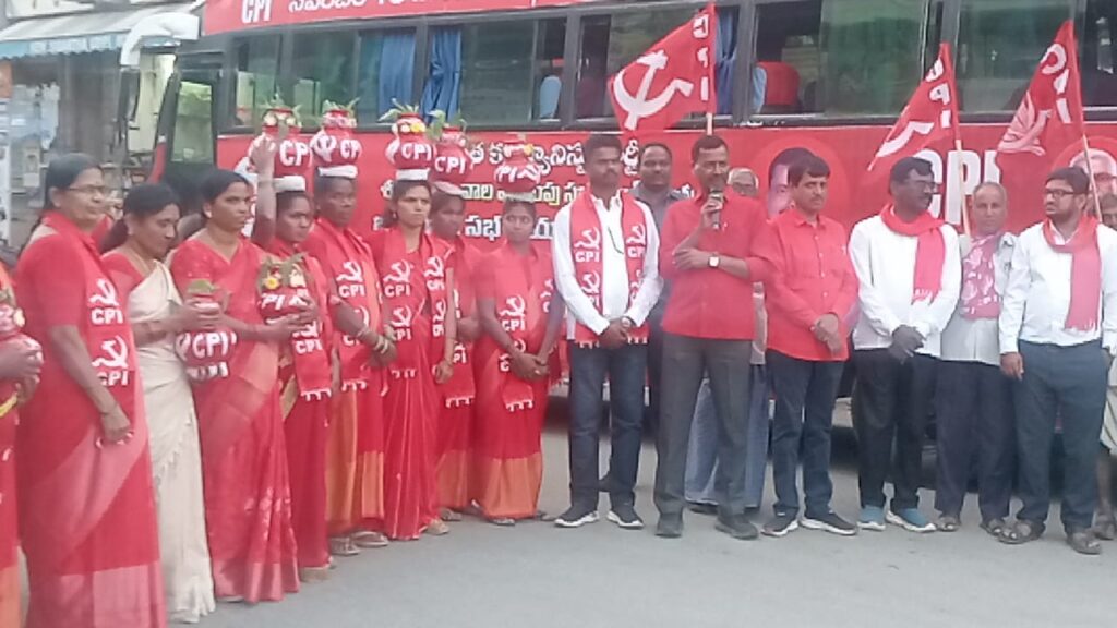 ఆర్థిక అసమానతలు అంతరాలు లేని సమాజం కోసం సిపిఐ పోరాడుతోందని సిపిఐ ఎమ్మెల్సీ నెల్లికంటి సత్యం, సిపిఐ రాష్ట్ర కార్యదర్శి వర్గ సభ్యుడు బాల నరసింహ అన్నారు. ఖమ్మం లో డిసెంబర్ 26న జరగనున్న సిపిఐ వందేళ్ళ ముగింపు ఉత్సవాల ప్రచార జాత వనపర్తికి చేరుకొంది. సిపిఐ వనపర్తి పట్టణ కమిటీ,NFIW ఆధ్వర్యంలోసిపిఐ ఆఫీస్ నుంచి పాలిటెక్నిక్ వరకు ఎర్ర బోనాల ప్రదర్శన నిర్వహించి బస్సు జాతకు ఘనస్వాగతం పలికారు. అనంతరం రాజీవ్ చౌక్ లో జిల్లా కార్యదర్శి విజయరాములు అధ్యక్షతన సభ నిర్వహించారు. ఈ సందర్భంగావారు మాట్లాడుతూ.. బిజెపి దేశ సంపదను ఆదాని అంబానీలకు కట్టబెడుతూ సమాజంలో ఆర్థిక అసమాన తలను మరింత పెంచుతుందన్నారు. మత విద్వేషాలను రెచ్చగొట్టి ప్రజా సమస్యల నుంచి ప్రజల దృష్టి మళ్లిస్తుందన్నారు. మతపరమైన చీలిక తెచ్చి రాజకీయ లబ్ధి పొందుతుందని దీనికి వ్యతిరేకంగా పోరాడుతామన్నారు. సమాజంలో అంతరాలు ఉన్నంతవరకు ఎర్రజెండా పోరాడుతూనే ఉంటుందన్నారు. సిపిఐ రాష్ట్ర కార్యదర్శి వర్గ సభ్యుడు బాల నరసింహ మాట్లాడుతూ.. కమ్యూనిస్టు పార్టీ ఏమిచ్చిందని కొందరు ప్రశ్నిస్తుంటారని ప్రజలకు ప్రశ్నించటం, పోరాడటం పరిష్కారం సాధించటం నేర్పింది కమ్యూనిస్టు పార్టీ యే అన్నారు. ఎవరికి కష్టం వచ్చినా, అన్యాయం జరిగిన వారి పక్షాన నిలబడి సిపిఐ పోరాడుతుందన్నారు. ప్రజా సమస్యల పరిష్కారం కోసం సిపిఐ ని బలోపేతం చేయాలన్నారు. ఖమ్మంలో డిసెంబర్ 26న జరిగే వందేళ్ళ ముగింపు ఉత్సవాల్లో పార్టీ శ్రేణులు ప్రజలు భాగస్వాములు కావాలని కోరారు. సిపిఐ జిల్లా కార్యదర్శి విజయరాములు, సిపిఐ జిల్లా కార్యవర్గ సభ్యులు కళావతమ్మ, జె. చంద్రయ్య, సిపిఐ పట్టణ కార్యదర్శి రమేష్, సహాయ కార్యదర్శి గోపాలకృష్ణ, రైతు సంఘం జిల్లా నేత పృథ్వినాదం, ఎన్ ఎఫ్ ఐ డబ్ల్యూ పట్టణ కన్వీనర్ జయమ్మ, ఏఐవైఎఫ్ జిల్లా అధ్యక్షుడు మహేష్, ప్రధాన కార్యదర్శి కుతుబ్, సిపిఐ పట్టణ మాజీ సహాయ కార్యదర్శి కురుమయ్య, భవన నిర్మాణ కార్మిక సంఘం జిల్లా అధ్యక్షుడు చిన్న కురుమయ్య, ఏఐఎస్ఎఫ్ జిల్లా అధ్యక్షుడు నరేష్, డివిజన్ కార్యదర్శి వంశి, మహిళా నేతలు శిరీష, వెంకటమ్మ, జ్యోతి, అంజనమ్మ, శంకరమ్మ తదితరులు పాల్గొన్నారు.