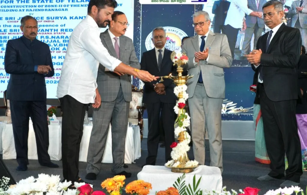 రంగారెడ్డి జిల్లా రాజేంద్రనగర్లో తెలంగాణ రాష్ట్ర హైకోర్టు జోన్-II నూతన భవన నిర్మాణ పనులకు సుప్రీంకోర్టు ప్రధాన న్యాయమూర్తి జస్టిస్ సూర్యకాంత్ శంకుస్థాపన చేసిన కార్యక్రమంలో ముఖ్యమంత్రి పాల్గొన్నారు.