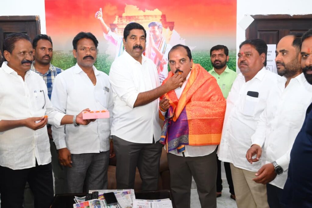 అనంతరం ఎమ్మెల్యే నాగరాజు హన్మకొండ జిల్లా డిసిసి అధ్యక్షుడిగా నూతన నియామకం పొందిన ఇనుగాల వెంకటరామిరెడ్డి ని శాలువాతో సత్కరించి స్వీట్ తినిపించి తన శుభాకాంక్షలను తెలియజేశారు….