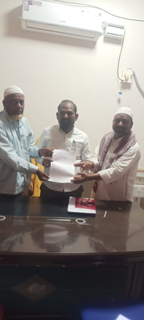 జిల్లా మైనారిటీ సంక్షేమ అధికారి కి వినతి పత్రం….. *ఈద్గాల వద్ద వసతులు కల్పించాలి…