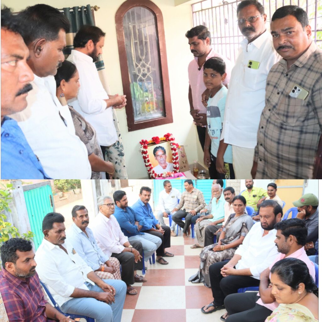 నెల్లూరు జిల్లా కోవూరు మండలం, కొత్తూరు కి చెందిన వై.యస్.ఆర్ కాంగ్రెస్ పార్టీ నాయకులు బైనబోయిన రాజేష్ కుమార్ తండ్రి గారైన బైనబోయిన చిన్నయ్య ఇటీవల అనారోగ్యంతో వైకుంఠం చెందడంతో నేడు కొత్తూరు లోని వారి స్వగృహానికి వెళ్లి స్వర్గీయ చిత్రపటానికి నివాళులర్పించి వారి కుటుంబ సభ్యులను పరామర్శించి ధైర్యం చెప్పిన.మాజీ మంత్రివర్యులు నల్లపరెడ్డి ప్రసన్నకుమార్ రెడ్డి ఈ కార్యక్రమంలో.వైసీపీ నాయకులు శివుని నరసింహారెడ్డి, నలుబోలు సుబ్బారెడ్డి, అత్తిపల్లి అనూప్ రెడ్డి, కవరగిరి శ్రీలత, గోపిరెడ్డి భాస్కర్ రెడ్డి, కాలికి శ్రీధర్ రెడ్డి, నెల్లూరు శివారెడ్డి, ఇంతా కార్తీక్ రెడ్డి, ఇద్దల సుధీర్ కుమార్, అంబటి గోపాల్ రెడ్డి, సిద్దవరపు కిషోర్ రెడ్డి, మావులూరు వెంకటరమణారెడ్డి, యమ్.డి గాయాజ్, మలుబోలు సతీష్ రెడ్డి,ఈపూరు ఆదిశేషారెడ్డి, జెట్టి శ్రీనివాసుల రెడ్డి, తలపల శీను, పాలపర్తి రమేష్,గోల కమలాకర్, కార్తీక్, మాలాద్రి, వెంకట్రావు,గున్నం రవికాంత్,రాము మరియు తదితరులు పాల్గొన్నారు..