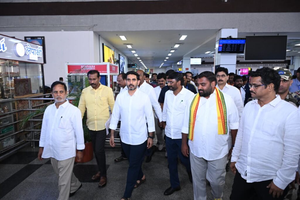రాష్ట్ర విద్య, ఐటీ శాఖల మంత్రి నారా లోకేష్ విశాఖ విమానాశ్రయానికి చేరుకోగా, కిమిడి రామ మల్లిక్ నాయుడు ఉత్తరాంధ్ర ప్రాంత ప్రజాప్రతినిధులు, నాయకులు, కార్యకర్తలతో కలిసి ఆయనకు ఘన స్వాగతం పలికారు.