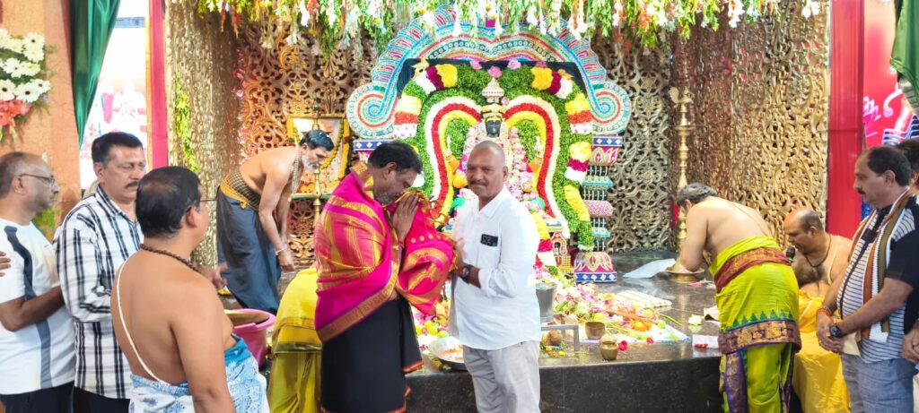 హైదర్ నగర్ డివిజన్ పరిధిలోని సెవెన్ హిల్స్ శ్రీ వేంకటేశ్వర స్వామిBy sakshitha news / నవంబర్ 20, 2025 Sakshitha news హైదర్ నగర్ డివిజన్ పరిధిలోని సెవెన్ హిల్స్ శ్రీ వేంకటేశ్వర స్వామి వారి దేవాలయంలో కార్తీక అమావాస్య సందర్భంగా మహాలక్ష్మి యాగంలో పాల్గొని ప్రత్యేక పూజలు చేసి అన్న దానం కార్యక్రమంలో పాల్గొన్న హైదర్ నగర్ డివిజన్ కార్పొరేటర్ నార్నె శ్రీనివాస రావు
