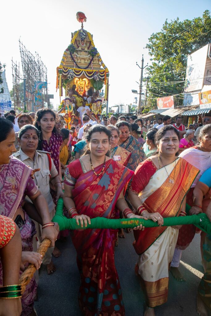 ** రథాన్ని లాగిన టీటీడీ అధికారిణులు